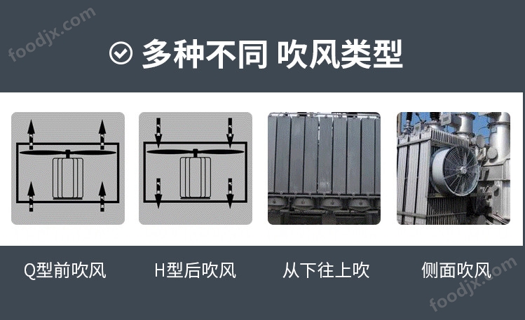 2. 外部風冷卻:冷卻風機安裝在散熱器的下方或側(cè)面。當風機啟動時,它產(chǎn)生強大的氣流,垂直或水平地吹過散熱器的散熱管表面。