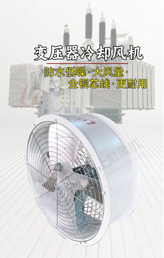 油浸式變壓器冷卻風機(通常簡稱變壓器風機或冷卻風扇)是大型油浸式電力變壓器的關鍵輔助設備。它的核心作用是通過強制空氣對流,加速變壓器散熱器的冷卻效率,從而帶走變壓器運行時因鐵損和銅損產(chǎn)生的大量熱量,確保變壓器繞組和絕緣油的溫度始終維持在安全范圍內(nèi)。