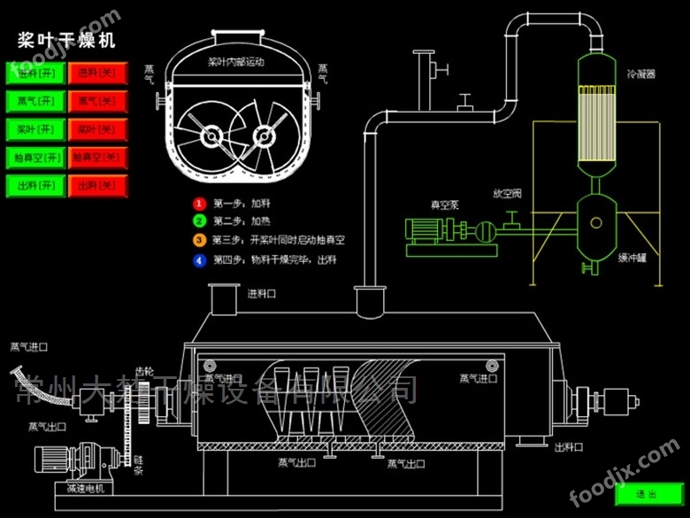 3、物料干燥完成后,先關(guān)閉熱源,待物料冷卻后,電機(jī)正轉(zhuǎn)出料。