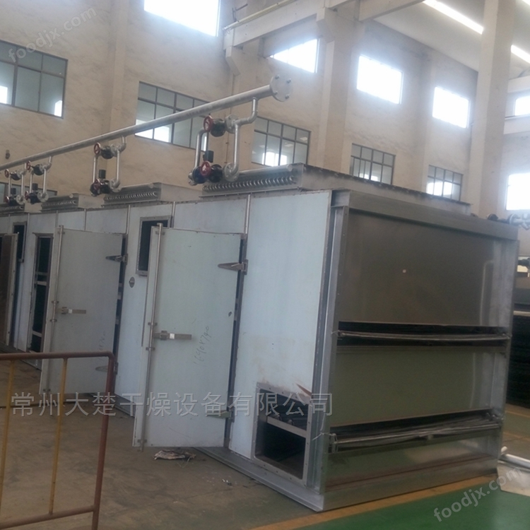 合成橡膠顆粒帶式干燥機(jī)用于透氣性較好的片狀、條狀、顆粒狀物料的干燥,對(duì)于脫水蔬菜、中藥飲片等含水率高、而物料溫度不允許高的物料尤為合適;該系列干燥機(jī)具有干燥速度快、蒸發(fā)強(qiáng)度高、產(chǎn)品質(zhì)量好的優(yōu)點(diǎn)。對(duì)于脫水濾餅的膏狀物料,需經(jīng)造?;蛑瞥砂魻詈笠嗫筛稍?。如:脫水蔬菜、顆粒飼料、味精、椰蓉、有機(jī)顏料、合成橡膠、丙烯纖維、藥品、藥材、小木制品、塑料制品、電子元器件老化、固化等。