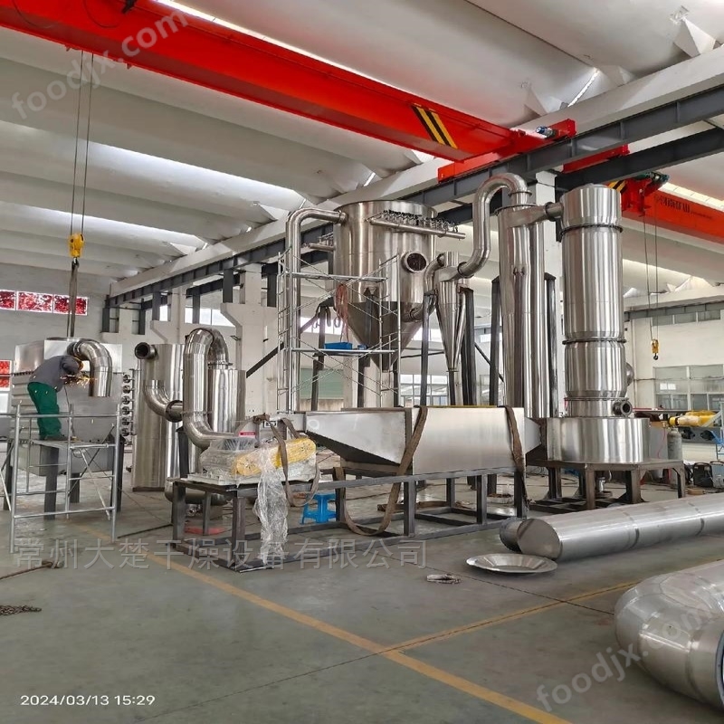 還有一種是無錐體的平底閃蒸干燥機,在旋閃套上開有布風孔槽或在集風室配裝布風機構。或采用平底無集風室,采用氣力直接加料的形式,此種形式適用于粉料或易分散的物料的干燥。