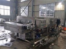 周轉(zhuǎn)筐清洗機由熱堿水段、消毒段、清水段三部分組成。設(shè)備除軸承之外其他均采用優(yōu)質(zhì)SUS304不銹鋼制作,首先采用高壓熱堿水噴淋清洗,各個循環(huán)水箱均采用立式不銹鋼離心水泵循環(huán)噴淋,從上、下、左、右四個方向同時對周轉(zhuǎn)筐進行噴淋沖洗;后經(jīng)網(wǎng)帶傳輸至消毒段進行消毒清洗。經(jīng)過輸送網(wǎng)帶,傳送至高壓噴淋清水段清洗,經(jīng)清水噴淋清洗后自動輸出。每個水箱均設(shè)有二道過濾裝置,便于隨時清理臟物;各個水箱設(shè)單獨排污清理閥,便于清理。堿水箱、消毒液水箱及清水箱內(nèi)分別設(shè)有電加熱管;水箱內(nèi)水溫自動控制,常溫至80℃(可調(diào))任意設(shè)定;設(shè)備清洗能力大,除油污效果好,洗凈率高。 設(shè)備上端噴淋管配有調(diào)節(jié)手輪,可調(diào)節(jié)噴淋管的高度,清洗筐大小尺寸一定范圍內(nèi)可調(diào),滿足不同條件清洗要求。設(shè)備采用雙層過濾,循環(huán)用水,節(jié)約能源。