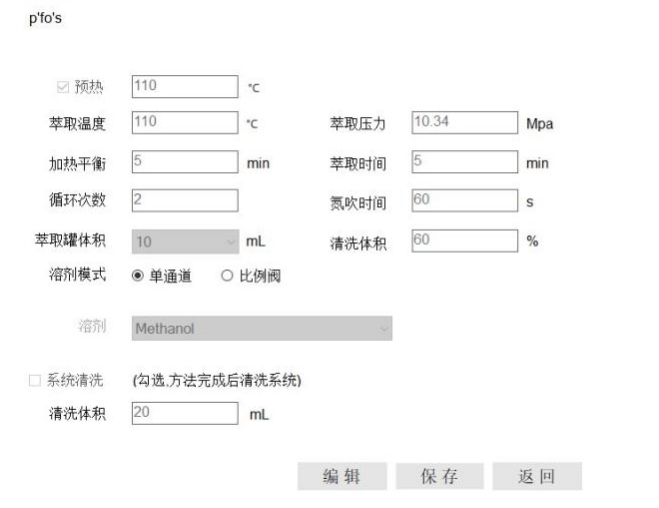 準(zhǔn)確稱取1g樣品,與3g硅藻土混勻后裝填至10mL快速溶劑萃取池中,按照下圖方法進(jìn)行萃取,將收集液旋蒸濃縮至約0.5mL(真空度150mbar、100rmp),加10mL水,混勻待凈化。